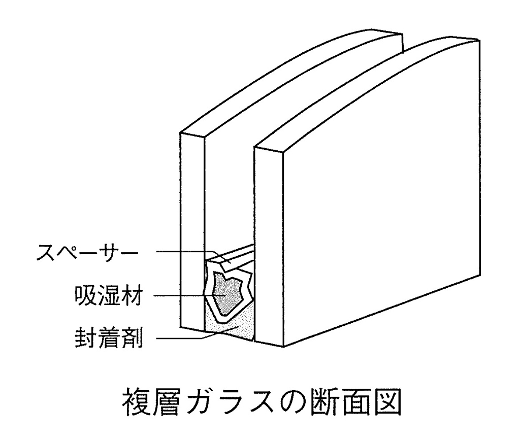 2枚の板ガラスの間に6〜14ミリ程度の空間を設け、乾燥空気を封入したガラス。断熱効果が高く、防音効果もあります。木製の輸入サッシも複層ガラスを使用しているものが一般的です。
